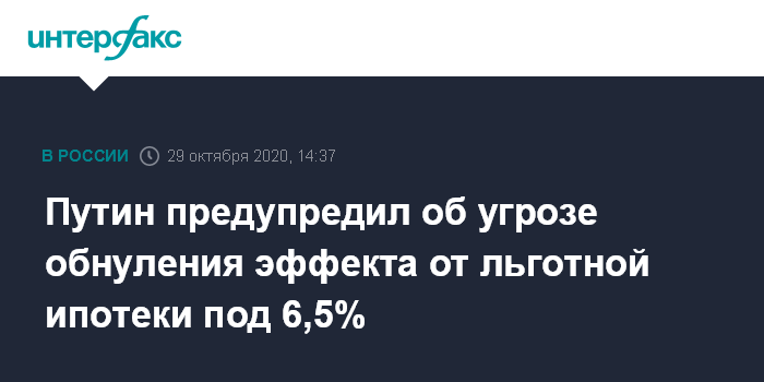 Путин предупредил об угрозе обнуления эффекта от льготной ипотеки под 6,5%