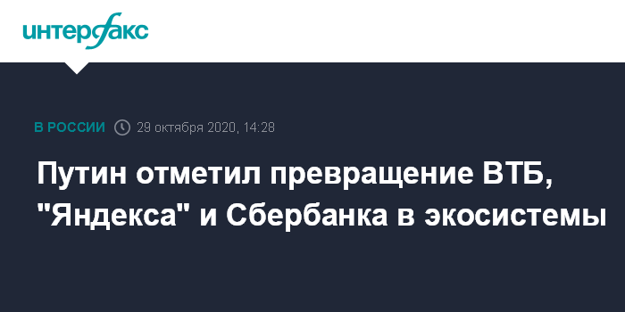 Путин отметил превращение ВТБ, "Яндекса" и Сбербанка в экосистемы