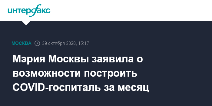 Мэрия Москвы заявила о возможности построить COVID-госпиталь за месяц