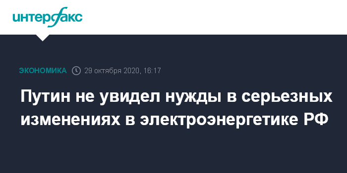 Путин не увидел нужды в серьезных изменениях в электроэнергетике РФ