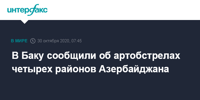 В Баку сообщили об артобстрелах четырех районов Азербайджана