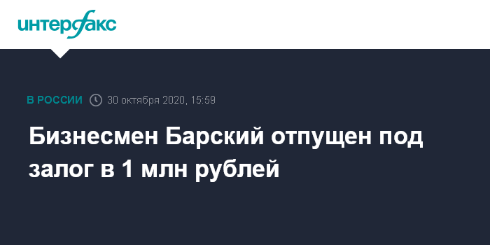 Он отметил, что суд отпустил Барского под залог в размере 1 млн рублей.
