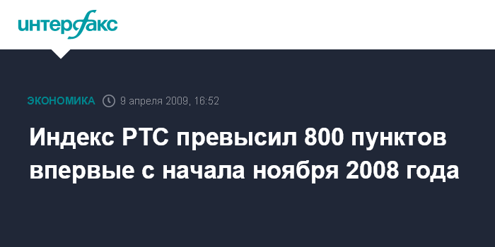 Индекс РТС превысил 800 пунктов впервые с начала ноября 2008 года