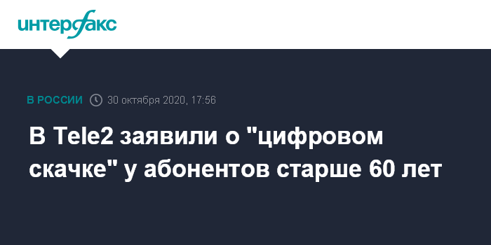 Москва. 30 октября. INTERFAX.RU - Оператор Tele2 в условиях пандемии отметил рост количества активных пользователей интернета в возрастной группе 60+, сообщил директор макрорегиона "Волга" Tele2 Равиль Хайбуллин. По его словам, многие из них совершили "цифровой скачок", сразу начав пользоваться соцсетями на телефонах, миновав компьютер.