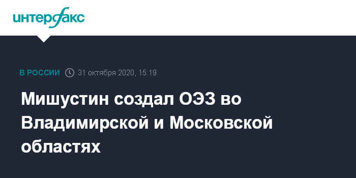 Москва. 31 октября. INTERFAX.RU - В Московской и Владимирской областях будут созданы новые особые экономические зоны (ОЭЗ). Постановления об этом подписал Председатель Правительства Михаил Мишустин.