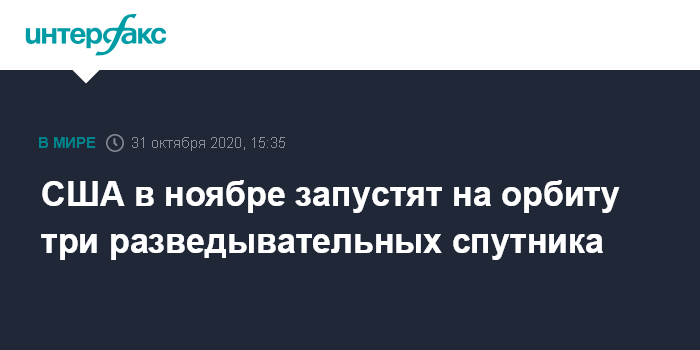 Москва. 31 октября. INTERFAX.RU - Соединенные Штаты планируют в ноябре вывести на орбиту три тяжелых спутника в интересах Национального управления военно-космической разведки США (NRO), следует из данных специализированного издания Spaceflight Now.