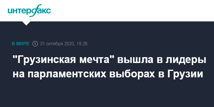 Москва. 31 октября. INTERFAX.RU - Правящая партия "Грузинская мечта" в ходе прошедших в субботу в Грузии парламентских выборов, по данным на 18:00 по тбилисскому времени (17:00 по Москве), набрала 55% голосов избирателей, говорится в опубликованных телекомпанией "Имеди" результатах экзит-пола, проведенного американской организацией по исследованию общественного мнения Public Opinion Strategies.