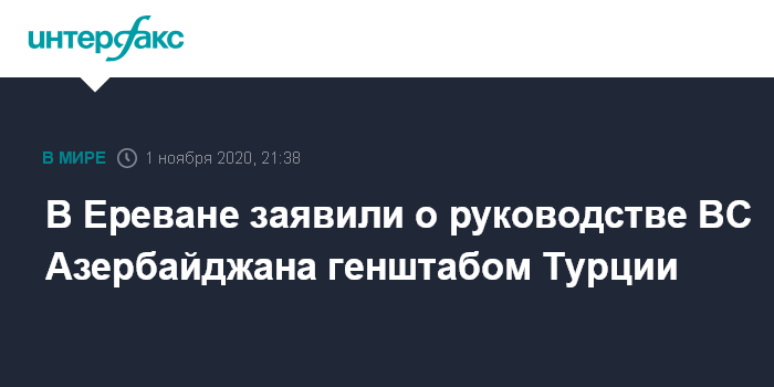 В Ереване заявили о руководстве ВС Азербайджана генштабом Турции