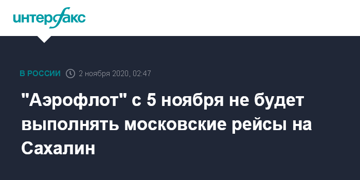 "С предложением временно отказаться от услуг "Аэрофлота" выступили депутаты областной думы в ходе обсуждения бюджета Сахалинской области на предстоящие три года. Правительство Сахалинской области поддержало эту инициативу и приняло решение прекратить субсидирование рейсов в связи с оптимизацией расходов региональной казны. С 5 ноября ежедневные рейсы в Москву будет выполнять только авиакомпания "Россия" ("дочка" Аэрофлота - ИФ)", - говорится в сообщении.