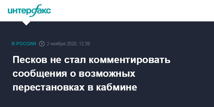 Песков не стал комментировать сообщения о возможных перестановках в кабмине