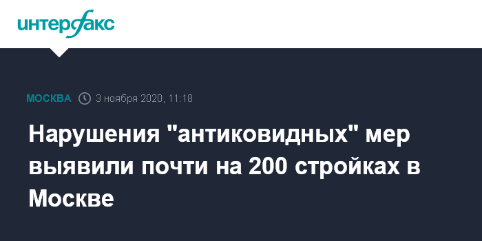 Как отмечается в сообщении, специалисты проверили 1170 строительных объектов, на 187 из них были выявлены нарушения "антиковидных" мер.