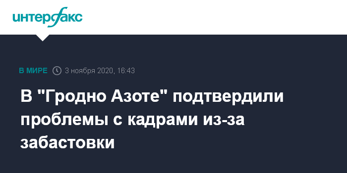 Москва. 3 ноября. INTERFAX.RU - Администрация "Гродно Азот" подтвердила проблемы с кадрами в некоторых цехах, но заявила о наличии специалистов с соответствующей квалификацией для доукомплектования смен.