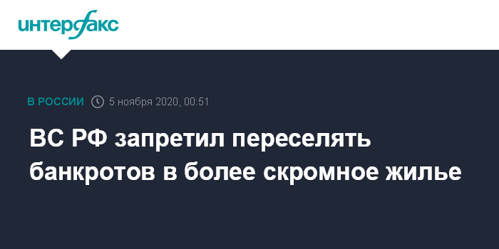 ВС РФ запретил переселять банкротов в более скромное жилье