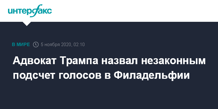 Адвокат Трампа назвал незаконным подсчет голосов в Филадельфии