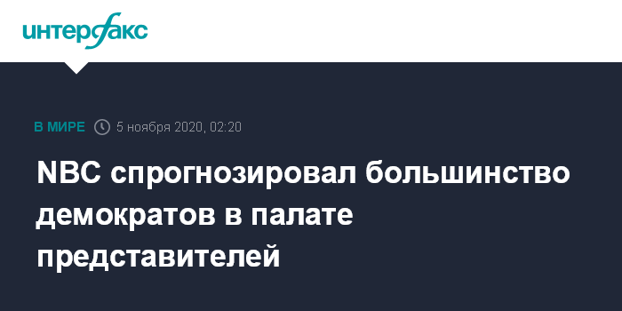 Москва. 5 ноября. INTERFAX.RU - Демократы сохранили большинство мест в Палате представителей Конгресса США по результатам выборов 2020 года, прогнозирует телеканал NBC.