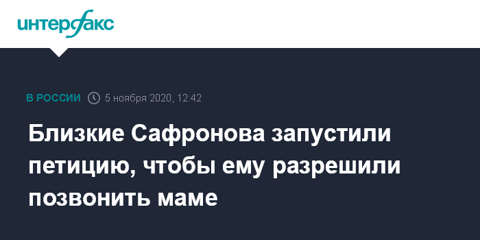 "Инициативная группа в поддержку Ивана Сафронова, в которую входят его друзья, родственники, коллеги (...) запускают кампанию, цель которой убедить следствие не только предоставить Ивану звонок в день рождения матери, но и разрешить общение с близкими родственниками. С сегодняшнего дня можно подписать петицию и поддержать кампанию, приняв участие в онлайн-флешмобе", - сообщили в инициативной группе.