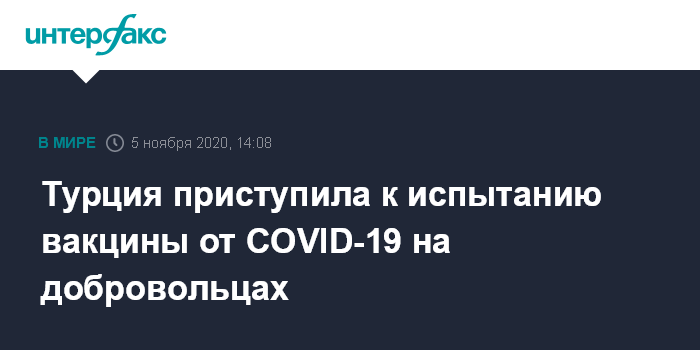 Москва. 5 ноября. INTERFAX.RU - Турция начала испытание на людях вакцины от коронавируса ERUCOV-VAC, разработанной в Университете Эрджиэс, сообщает в четверг канал TRT Haber.