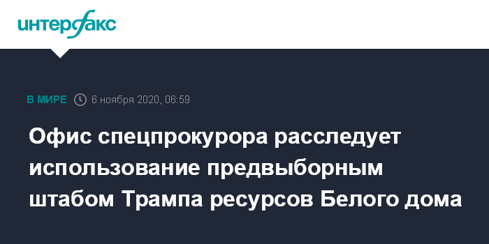 Офис спецпрокурора расследует использование предвыборным штабом Трампа ресурсов Белого дома