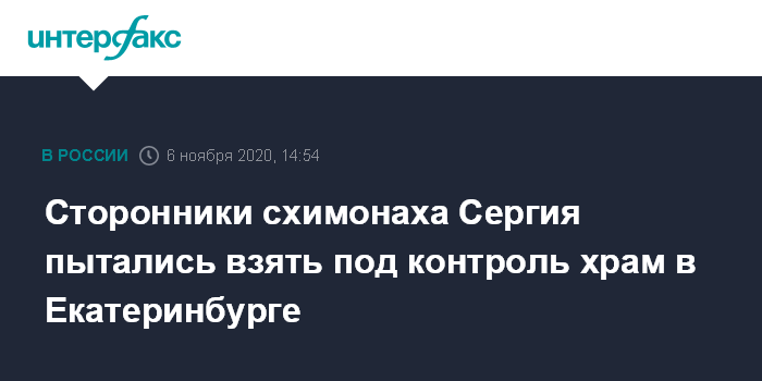 "Представители Среднеуральского женского монастыря, захваченного отлученным от церкви бывшим схимонахом Сергием (Романовым), пытались сегодня взять под контроль храм святой Блаженной Ксении в Екатеринбурге", - сказал собеседник агентства.