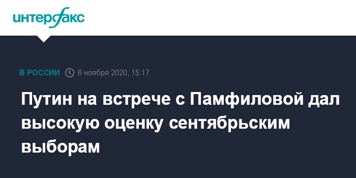 Путин на встрече с Памфиловой дал высокую оценку сентябрьским выборам