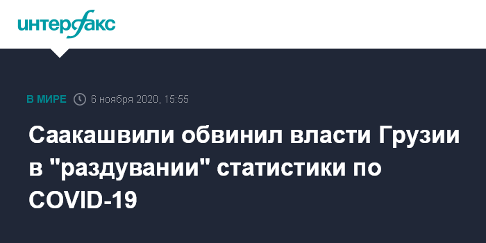Москва. 6 ноября. INTERFAX.RU - Бывший президент Грузии Михаил Саакашвили заявил, что не доверяет статистике Минздрава страны, свидетельствующей о резком увеличении числа заражений COVID-19 в последние дни, и призвал своих сторонников продолжать борьбу за назначение новых парламентских выборов.