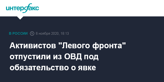 Москва. 6 ноября. INTERFAX.RU - В центре Москвы полиция задержала не четверых активистов "Левого фронта", как сообщалось ранее, а пятерых. Их отпустили под обязательство о явке, рассказал координатор движения Сергей Удальцов.