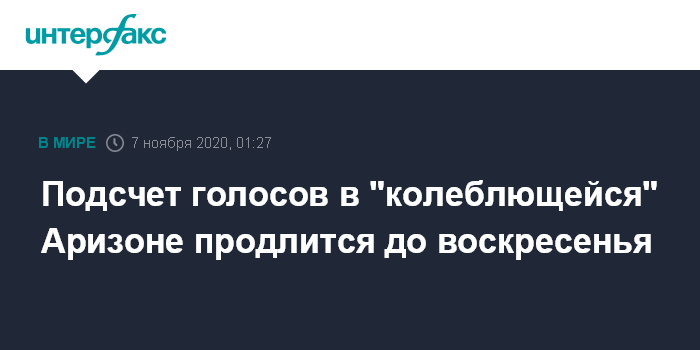 Москва. 7 ноября. INTERFAX.RU - Обработка избирательных бюллетеней в Аризоне - одном из "колеблющихся" штатов - продлится до конца выходных, заявила госсекретарь штата Кэти Хоббс.