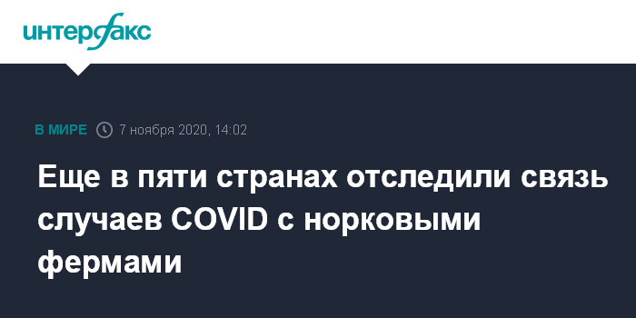 Ранее сообщалось о том, что мутация коронавируса COVID-19 была выявлена у животных на фермах по разведению норок в Дании, в связи с чем в Ютландии, регионе на северо-востоке страны, были введены специальные ограничения. В этой части страны, в частности, объявили о закрытии баров и ресторанов, остановлено движение общественного транспорта, людям из других регионов запрещено ездить в Ютландию.