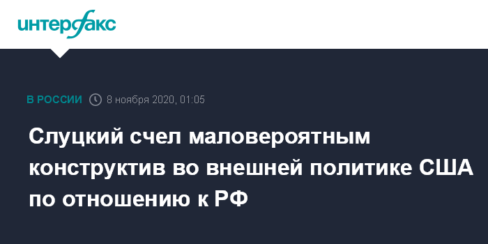 "Победа Байдена, по мнению ряда экспертов, может внести некий конструктив во внешнюю политику США. Многие аналитики в случае его президентства не исключали возможности возврата США в Парижское соглашение по климату, а также в СВПД - иранскую "ядерную сделку". Однако на российском направлении, к сожалению, не стоит ожидать существенных перемен в лучшую сторону", - сказал Слуцкий журналистам в воскресенье.