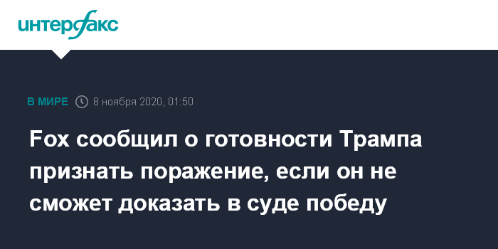 Fox сообщил о готовности Трампа признать поражение, если он не сможет доказать в суде победу