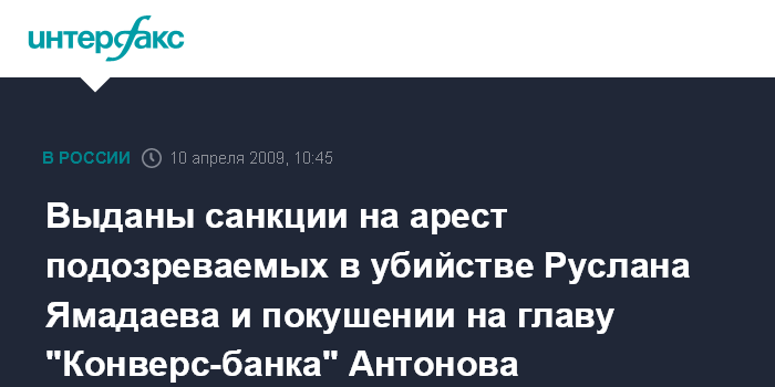 Выданы санкции на арест подозреваемых в убийстве Руслана Ямадаева и покушении на главу "Конверс-банка" Антонова