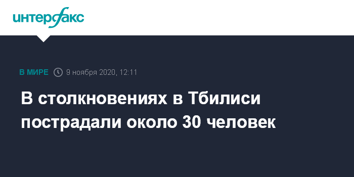 По данным ведомства, в столкновениях в ходе акций протеста сторонников грузинской оппозиции, недовольных итогами парламентских выборов, пострадали около 30 человек.