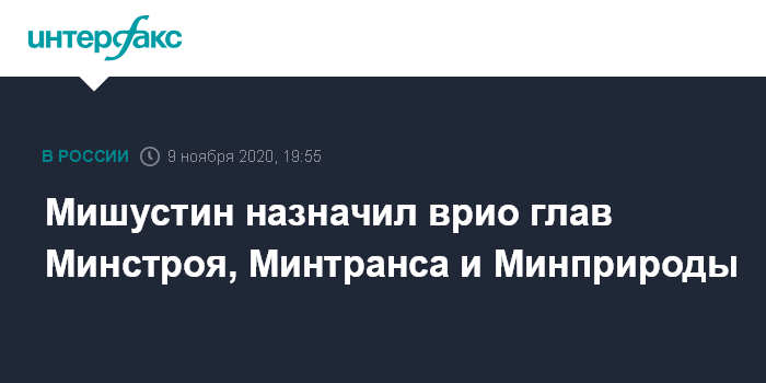 Москва. 9 ноября. INTERFAX.RU - Председатель правительства России Михаил Мишустин подписал распоряжения о назначении врио глав трех федеральных министерств, сообщает пресс-служба кабинета министров.