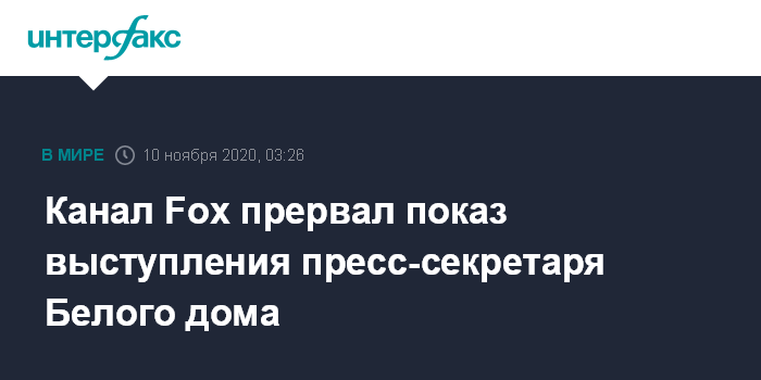 Москва. 10 ноября. INTERFAX.RU - Телеканал Fox News в понедельник прервал трансляцию пресс-конференции предвыборного штаба президента Дональда Трампа, во время которой пресс-секретарь Белого дома Кейли Макинани обвинила демократов в "приветствии" мошенничества и незаконного голосования.