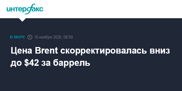 Цена Brent скорректировалась вниз до $42 за баррель
