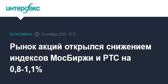 Рынок акций открылся снижением индексов МосБиржи и РТС на 0,8-1,1%