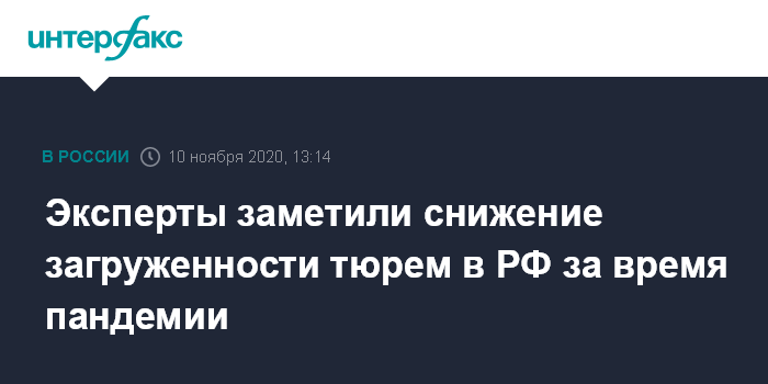 Москва. 10 ноября. INTERFAX.RU - Число заключенных в российских тюрьмах сократилось с начала пандемии COVID-19, свидетельствуют данные доклада университета Лозанны, подготовленного для Совета Европы.