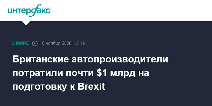 Москва. 10 ноября. INTERFAX.RU - Автопроизводители в Великобритании потратили, как минимум, 735 млн фунтов стерлингов ($970 млн) на подготовку к выходу страны из Европейского союза и предупредили о риске значительно больших потерь в случае, если британские переговорщики не смогут прийти к соглашению с блоком.