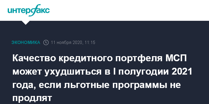 Качество кредитного портфеля МСП может ухудшиться в I полугодии 2021 года, если льготные программы не продлят