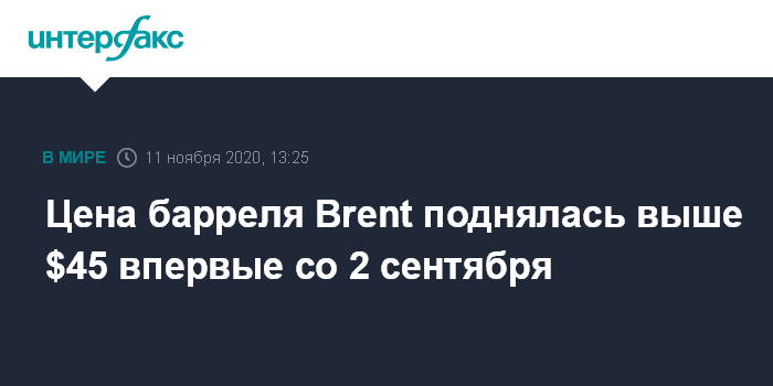 Цена барреля Brent поднялась выше $45 впервые со 2 сентября