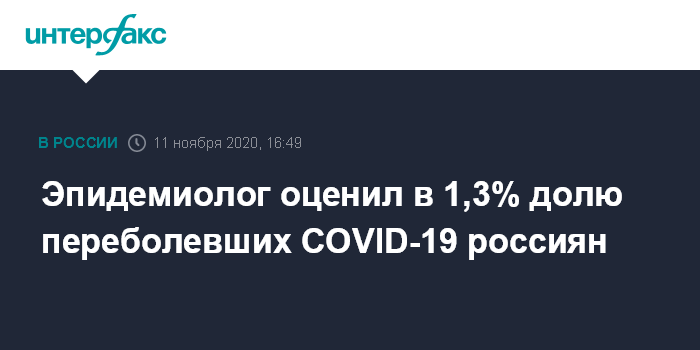 Эпидемиолог оценил в 1,3% долю переболевших COVID-19 россиян