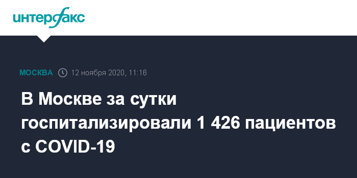 Москва. 12 ноября. INTERFAX.RU - В Москве за последние сутки госпитализировано почти 1,5 тысячи человек с коронавирусом, количество госпитализированных незначительно увеличилось по сравнению с предыдущим сутками, сообщили "Интерфаксу" в городском оперативном штабе по контролю и мониторингу ситуации с COVID-19.