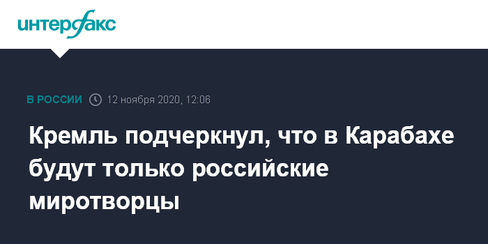 Кремль подчеркнул, что в Карабахе будут только российские миротворцы