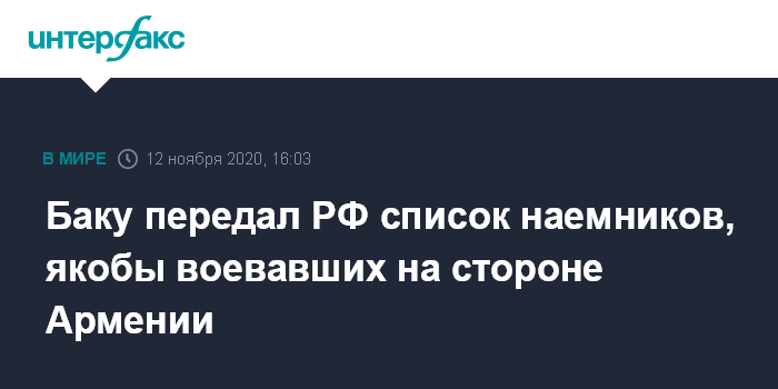 По его словам, Баку передал Москве подробный список наемников, воевавших в Карабахе на армянской стороне.