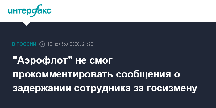 Москва. 12 ноября. INTERFAX.RU - В пресс-службе авиакомпании "Аэрофлот" заявили "Интерфаксу", что не располагают информацией о задержании и аресте представителя компании в Великобритании по уголовному делу о государственной измене.