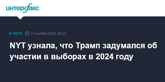 По сведениям издания, президент сказал своим советникам, что если Байден в итоге победит в этом году, он серьезно подумает о том, чтобы вскоре объявить о своем намерении участвовать в выборах в 2024 году. Уточняется, что данные замечания Трамп сделал на встрече в Белом доме в среду во время беседы с несколькими советниками, многие из которых заявили ему, что шансы изменить исход выборов 2020 года крайне низки.