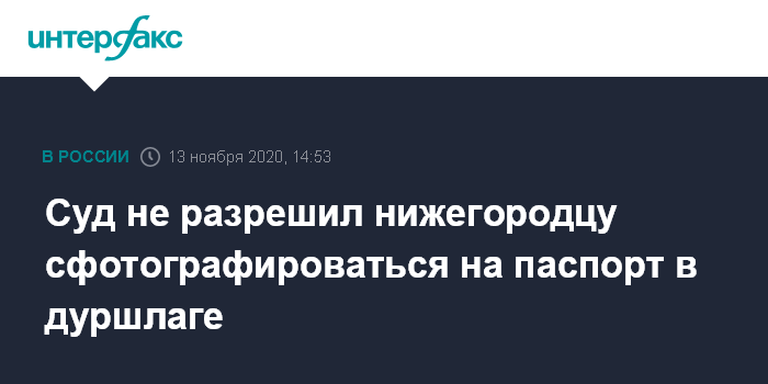 Москва. 13 ноября. INTERFAX.RU - Советский суд Нижнего Новгорода отклонил иск жителя города о праве сфотографироваться для заграничного паспорта с дуршлагом на голове, сообщила объединенная пресс-служба судов региона.