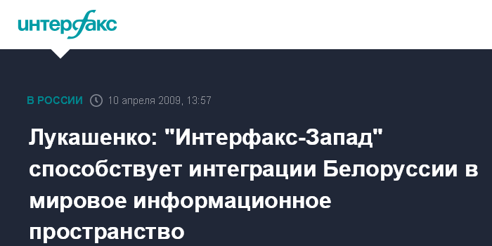 Лукашенко: "Интерфакс-Запад" способствует интеграции Белоруссии в мировое информационное пространство