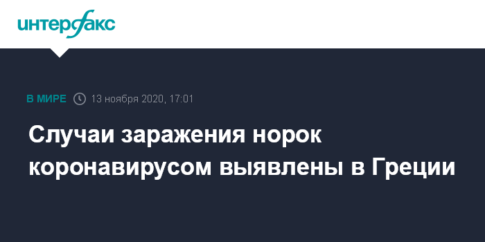 Москва. 13 ноября. INTERFAX.RU - Коронавирус COVID-19 был обнаружен у норок на двух фермах на севере Греции, сообщает в пятницу издание The Guardian со ссылкой на греческое министерство сельского хозяйства.
