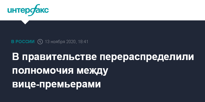 Москва. 13 ноября. INTERFAX.RU - Премьер-министр Михаил Мишустин в пятницу утвердил перераспределение обязанностей между своими заместителями в связи с назначением десятого вице-премьера, экс-главы Минэнерго Александра Новака.